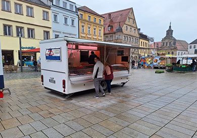 Der Viktualienmarkt auf dem Bayreuther Marktplatz,